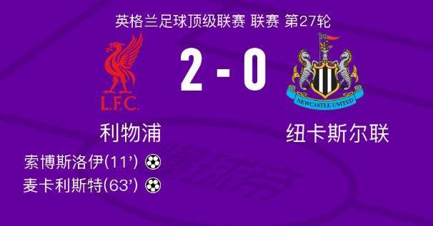北京时间今天(2月27日)凌晨,英超第27轮演出一场焦点大战,利物浦主场迎战纽卡斯尔联。上半场索博斯洛伊破门,下半场阿根廷中场麦卡利斯特扩大比分,最终,利物浦以2-0降服纽卡斯尔联,多赛一场跳动第2名枪手13分。本赛季英超冠军曾经莫得什么悬念。