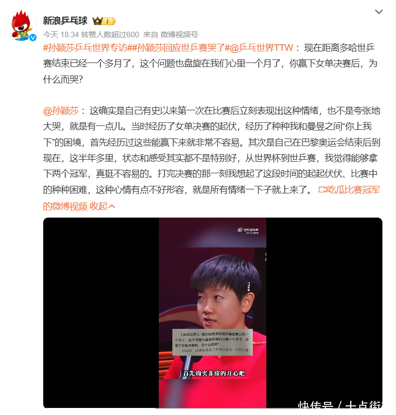 北京技巧8月4日,着名杂志《乒乓宇宙》8月刊报谈了对孙颖莎的采访,其中谈到了群众十分矜恤的“孙颖莎世乒赛夺冠落泪”的话题!